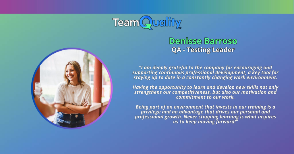 Today, we bring you the story of Denisse Barroso, someone who embodies the spirit of growth and perseverance that defines us at Team Quality Corp. Denisse Barroso started her journey at TQ five years ago as a referral to the Junior QA Training program. In June 2021, she took on the challenge of becoming a […]