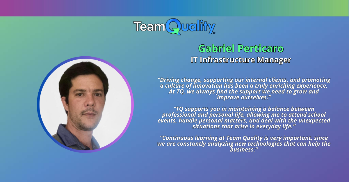 Gabriel began his journey at Team Quality Corp 1 year and 4 months ago as a Senior IT Specialist. Thanks to his commitment, strategic vision,