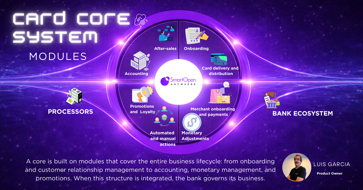 Previously we discussed the strategic importance of the card core within the banking business. Beyond its role as the central platform, there is a key aspect that materializes its function in daily operations: the modules that govern the business across its different operational fronts.