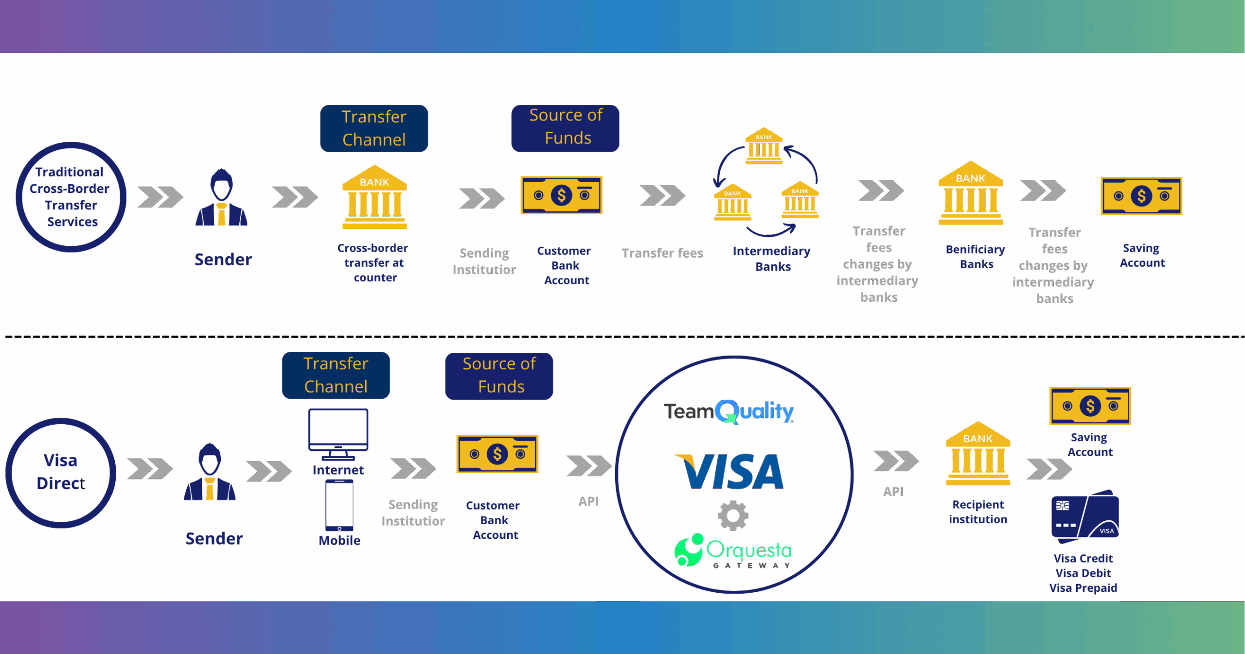 Con Orquesta Gateway, conectamos mediante APIs a las instituciones con la red global de Visa para realizar pagos internacionales de alto valor.